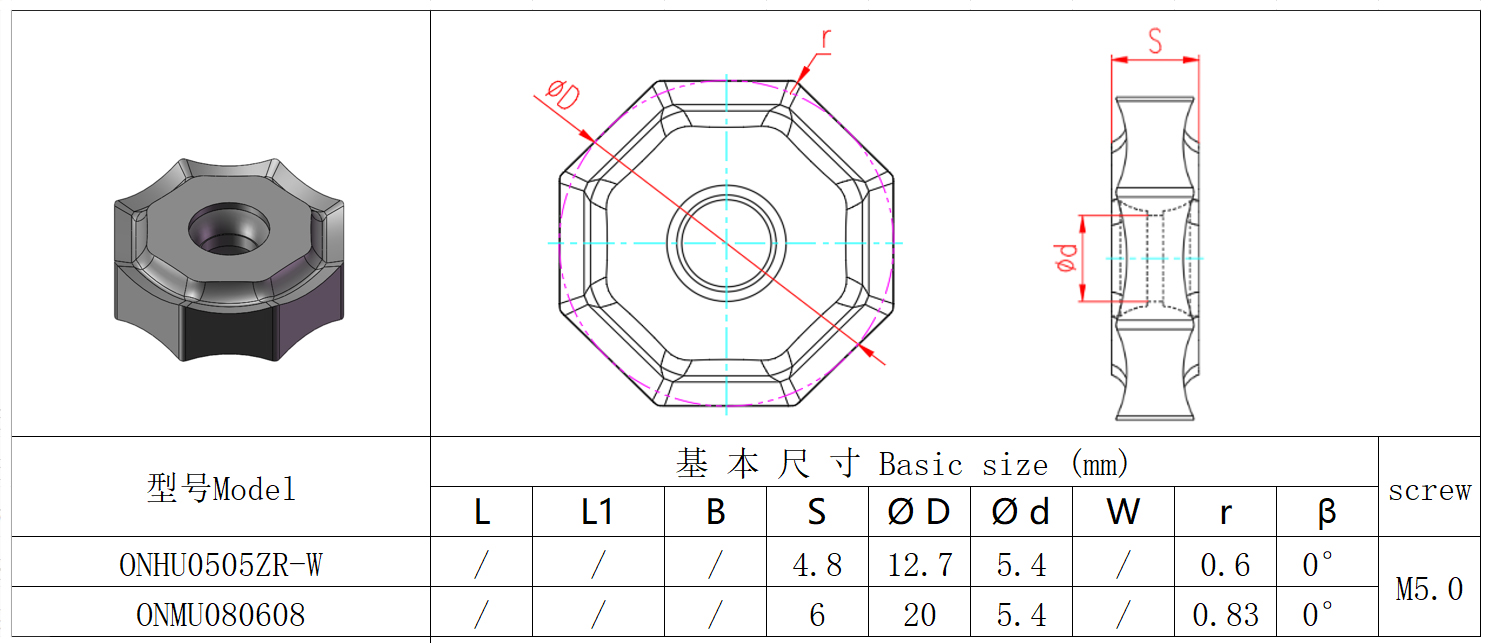 CNC Milling Insert with PVD Coating ONMU080608 HYB208, Suitable For Difficult-to-machine Materials Except High-temperature Alloys. Images |